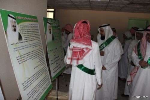 احتفت الادارة العامة للتربية والتعليم بمنطقة الحدود الشمالية باليوم الوطني ال83 للمملكة حيث افتتح مدير عام التربية والتعليم عبدالرحمن بن سعد القريشي بحضور مساعديه ومديري الادارات والاقسام والمشرفين التربويين ومديري المدارس وعدد كبير من المعلمين والطلاب المعرض الخاص باليوم الوطني الذي اعدته ثانوية شيخ الاسلام ابن تيمية واستعرض من خلاله الطلاب مهارات في رسم لوحات سريعة عن الوطن وكذلك عدد من اللوحات التي تحاكي تاريخ الوطن