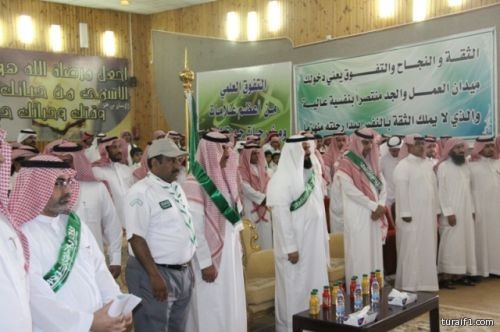 بعد ذلك رعى القريشي الحفل الذي نفذه قسم النشاط الثقافي بالإدارة واشتمل على النشيد الوطني والقران الكريم ثم كلمة لمدير ادارة نشاط الطلاب تركي بن رضيمان العنزي ثم قدم الطالبان خالد حمدان العنزي ومحمد فالح العنزي القاء وطنيا