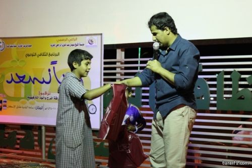 أقامت الجمعية الخيرية بمحافظة طريف بالتعاون مع لجنة حياة ملتقى بعنوان “معاً نسعد” بحضور مسؤل لجنة حياة الشيخ هزاع حذاف الرويلي وبمتابعة من رئيس الجمعية الخيرية بالمحافظة الشيخ ثويني برد الرويلي و فرقة المرح والود من منطقة تبوك بقيادة المنشد المبدع سلطان الكعبي والمعلق عمر المطيري والتي أقامت مسابقة للحضور و تم توزيع عدد من الهدايا القيمة لهم .