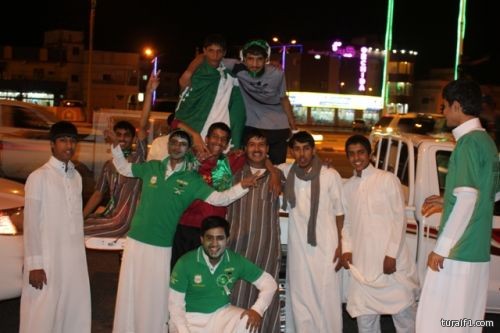 إحتفل أهالي طريف وشبابها ليلة البارحة بطريقتهم الخاصة عبر مسيرات جابت الشوارع والميادين داخل المحافظة حيث تزينت السيارات بالأعلام والألوان الخضراء .