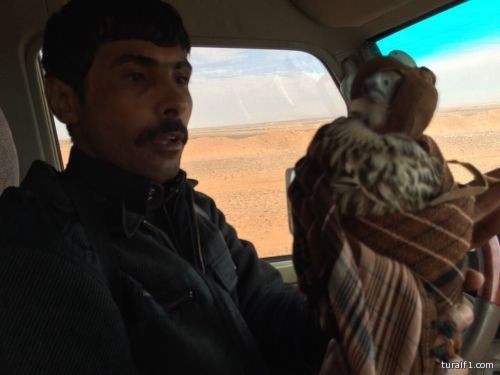 تمكن الصقار السعدي عماش الرويلي وثامر راضي الرويلي من إصطياد طير ) شاهين ) فرخ صباح هذا اليوم الأحد في منطقة عروس في حرة الحرة شرق محافظة طريف .