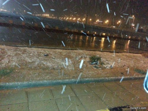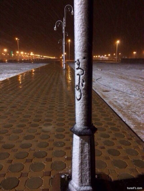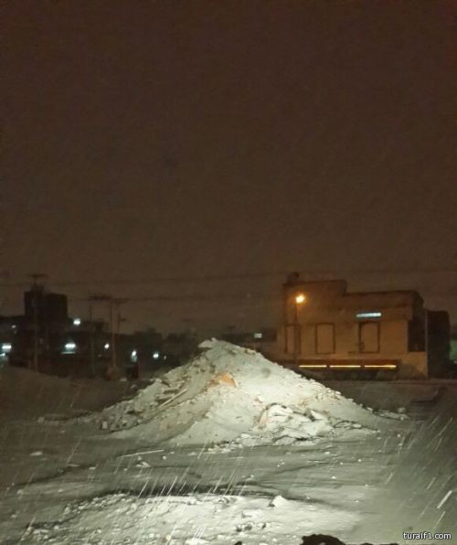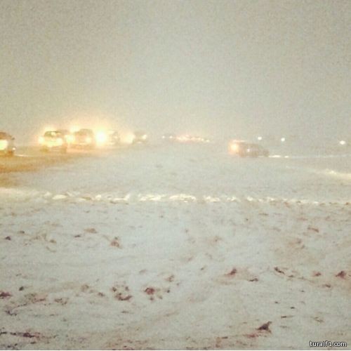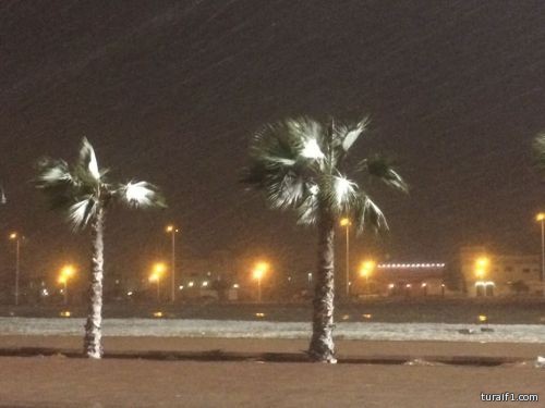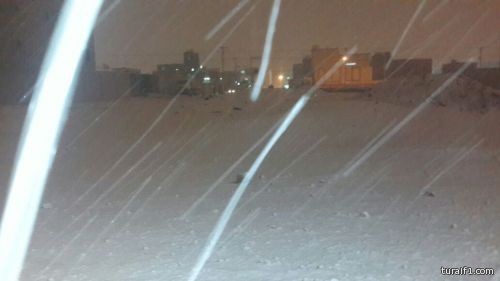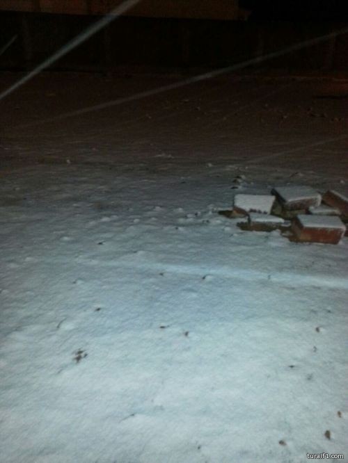 تتساقط الثلوج هذه الساعات من مساء اليوم الجمعة الموافق 18 / 3 / 1436هـ على محافظة طريف حيث غطت عدد من الشوارع والميادين .