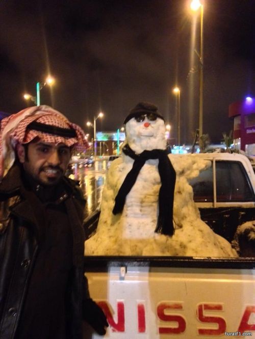 بعد غزارة الأمطار التي تساقطت هذه الليلة من مساء يوم الجمعة الموافق 18 / 3 / 1436هـ إستمتع أهالي طريف بتصاميم رجل الثلج بعدد من الأحجام والرسومات الرائعة …