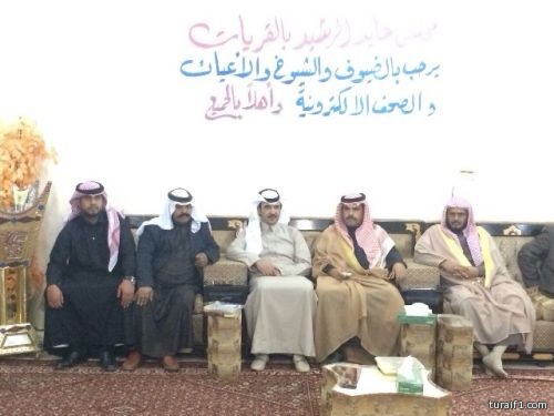 كما القى الاستاذ محمد عايد الرشيد كلمه رحب بالجميع وتحدث عن ولاء الاباء والاجداد والاحفاد وتاصل اللحمه الوطنية من ابناء القبيلة لولاة الامر وحفظ الله الوطن حكومة وشعبا وشكر جميع الحضور من قبيلة ولدعلى والادباء والاعلاميين والصحفيين وشكر صاحب المجلس والفكرة رجل الاعمال عايد الرشيد ثم بدى الشكر للاعلاميين والصحفيين والشكر موصول لخبارية طريف ممثله بلاستاذ سلطان الهوير وبعدها اقيمت مأدبت عشاء بهذه المناسبه