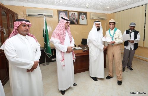 كرم سعادة مدير عام التعليم بمنطقة الحدود الشمالية الاستاذ عبدالرحمن القريشي الكشافين المشاركين في معسكرات الخدمه العامه بمكة المكرمة لحج عام 1436هـ وقام بتوزيع الاوسمه والشهادات لهم بحضور المساعد للشؤون التعليمية الاستاذ صالح عباس ومساعد مدير إدارة النشاط الطلابي الاستاذ سليمان الحميد ومشرفي النشاط الكشفي والقادة المرافقين للفرق .