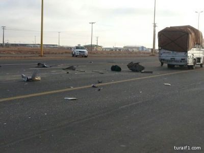 وقع صباح اليوم الأربعاء حادث اصطدام بين سيارتين احداهما من نوع ديانا والأخرى من نوع تويوتا على طريق “طريف – عرعر” .
