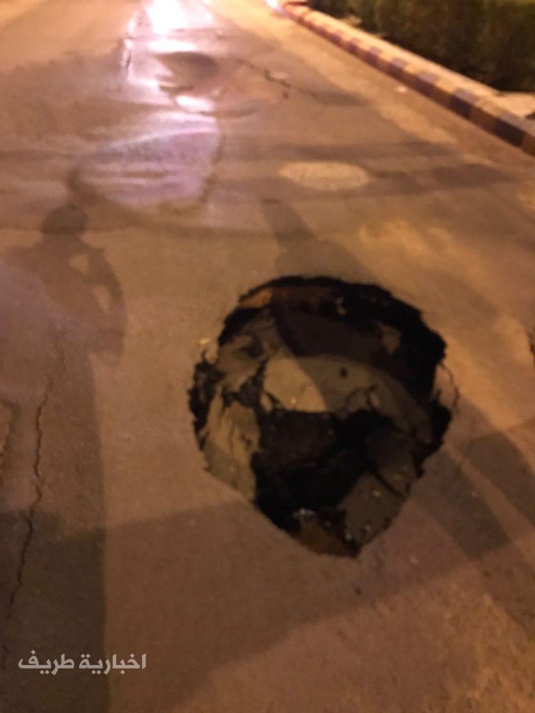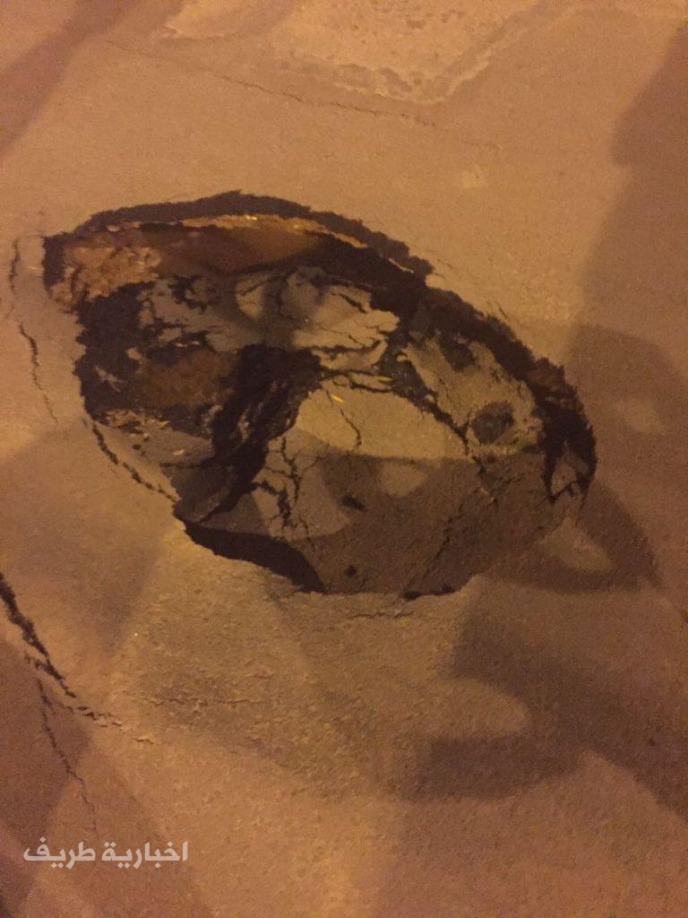 رصدت عدسة اخبارية الطريف هبوط في الطبقة الإسفلتية بشارع الملك سعود بالقرب من منتزه الخيمة بطريف مما يشكل خطراً على مرتادي الطريق ويحوله إلى مصيدة للمركبات .