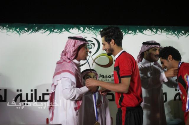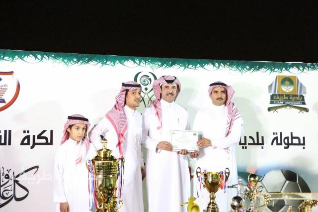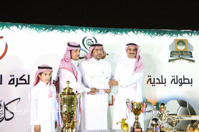 وبعد نهاية المباراة قام رئيس بلدية طريف المهندس الظمني بن حطاب الرويلي ورجل الأعمال والداعم الحصري للبطولة الأستاذ بندر محمود المسعر بتوزيع الجوائز والكؤوس والميداليات وشهادات التقدير