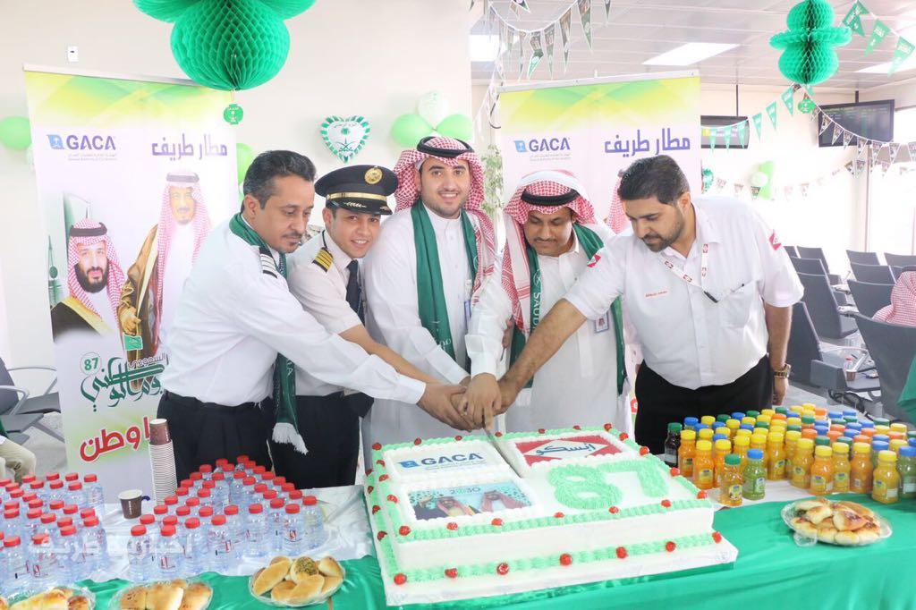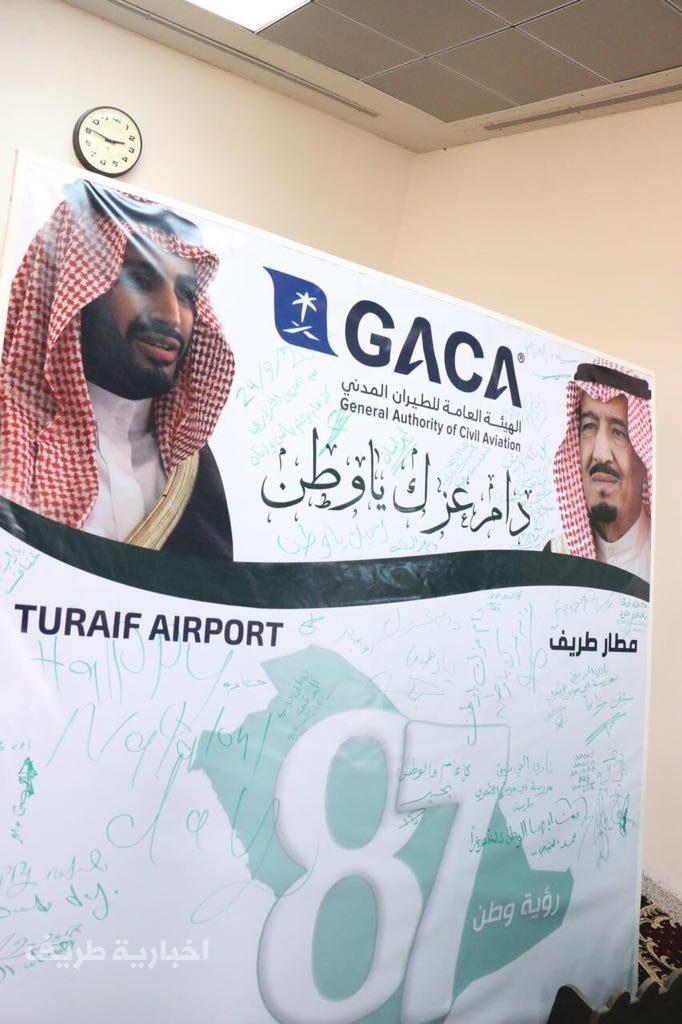 هذا وقد رفع منسوبو المطار خالص التهاني والتبريكات لمقام خادم الحرمين الشريفين الملك سلمان بن عبدالعزيز وسمو ولي عهده الأمين بهذه المناسبة الوطنية الغالية على كل مواطن مشيرين أن ذكرى اليوم الوطني تأتي ونحن نسجّل بفخر واعتزاز كل المنجزات الحضارية الفريدة التي أرست قاعدة متينة نعيشها اليوم وننعم بثمارها من أجل حاضر زاهر وأملاً في غد مشرق من أجل وطن متميز تتواصل فيه مسيرة الخير والنماء وتعلو فيه رايات التنمية وصروح النهضة بشكل متسارع ومتجدد يرعاها ويشرف ويسهر عليها أشبال المؤسس أبناؤه الميامين .