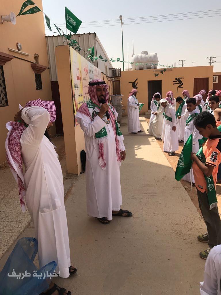 أقامت متوسطة وثانوية تحفيظ القرآن الكريم بمحافظة طريف اليوم الاثنين ١٤٣٩/١/٥ احتفالية بمناسبة اليوم الوطني (٨٧) للمملكة العربية السعودية ، حيث شارك فيه جميع المعلمين والطلاب ، وذلك بإشراف مباشر من قائد المدرسة الأستاذ / عبدالله سالم بندور الرويلي ومعلمي المدرسة ككل .