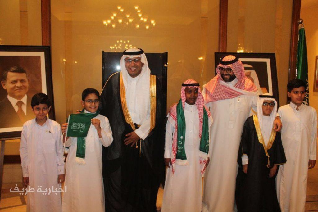 وقد أستقبل سفير خادم الحرمين الشريفين لدى الاردن صاحب السمو الامير خالد بن فيصل آل سعود جمعاً من المواطنين والطلبة السعوديين بهذه المناسبة الغالية، وشارك سموه وأعضاء السفارة مع المواطنين هذه الاحتفالية .