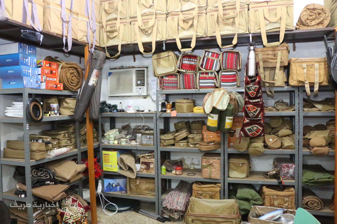 ويتكون المحل من واجهتين وعدد من الأقسام والبضائع الخاصة بلوازم البر والمقناص من خزانات مياه وقدور طبخ مع معداتها واباريق ودلال وحقائب العزبة المتكاملة ومواقد النار والمصابيح ولوازم شبك الطيور وغيرها الكثير .