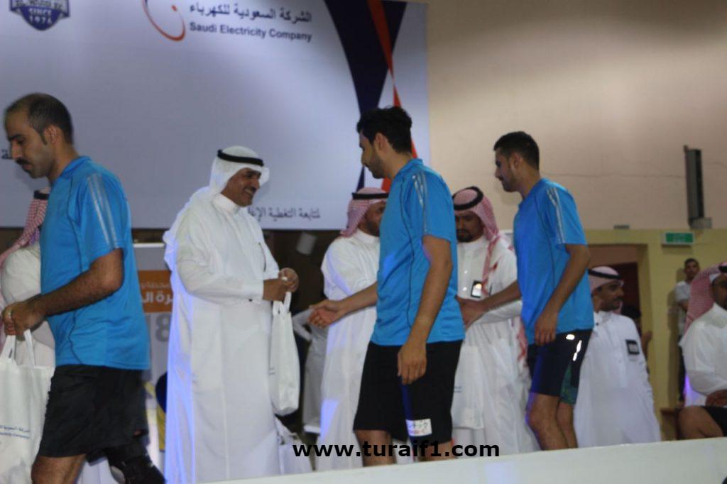 سلّم محافظ طريف، بدر بن نجر الصقر، ومدير محطة وعد الشمال، ثامر بن سالم العنزي، كأس البطولة للفريق الفائز، إضافة إلى تسليم كأس المركز الثاني لفريق الأندلس، فيما قدمت “السعودية للكهرباء” العديد من الجوائز للفائزين والجمهور، حيث رعى الصقر المباراة الختامية بحضور رئيس نادي الوعد الرياضي، جزاء بن مطارد الرويلي، وعدد من مدراء الإدارات الحكومية.