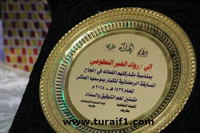 بحضور وتشريف سعادة محافظ طريف الاستاذ بدر بن نجر الصقر اختتمت فعاليات المسابقة الثقافية الرمضانية اليوم السبت ١٧ رمضان ١٤٣٩