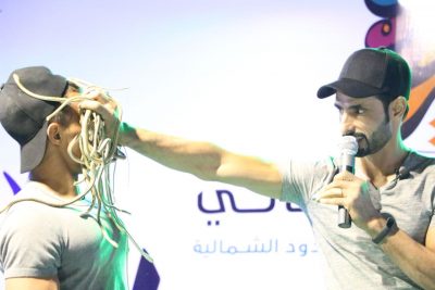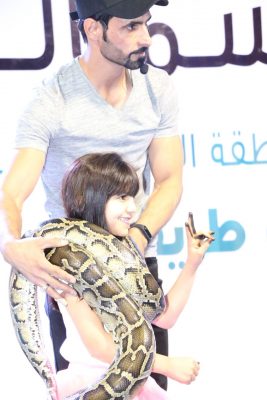 بعد ذلك استمتع الحضور بمشاهدة عرض الثعابين والألعاب النارية ثم استمرت الفقرات مع المنشد عبدالعزيز مكمي الرويلي .