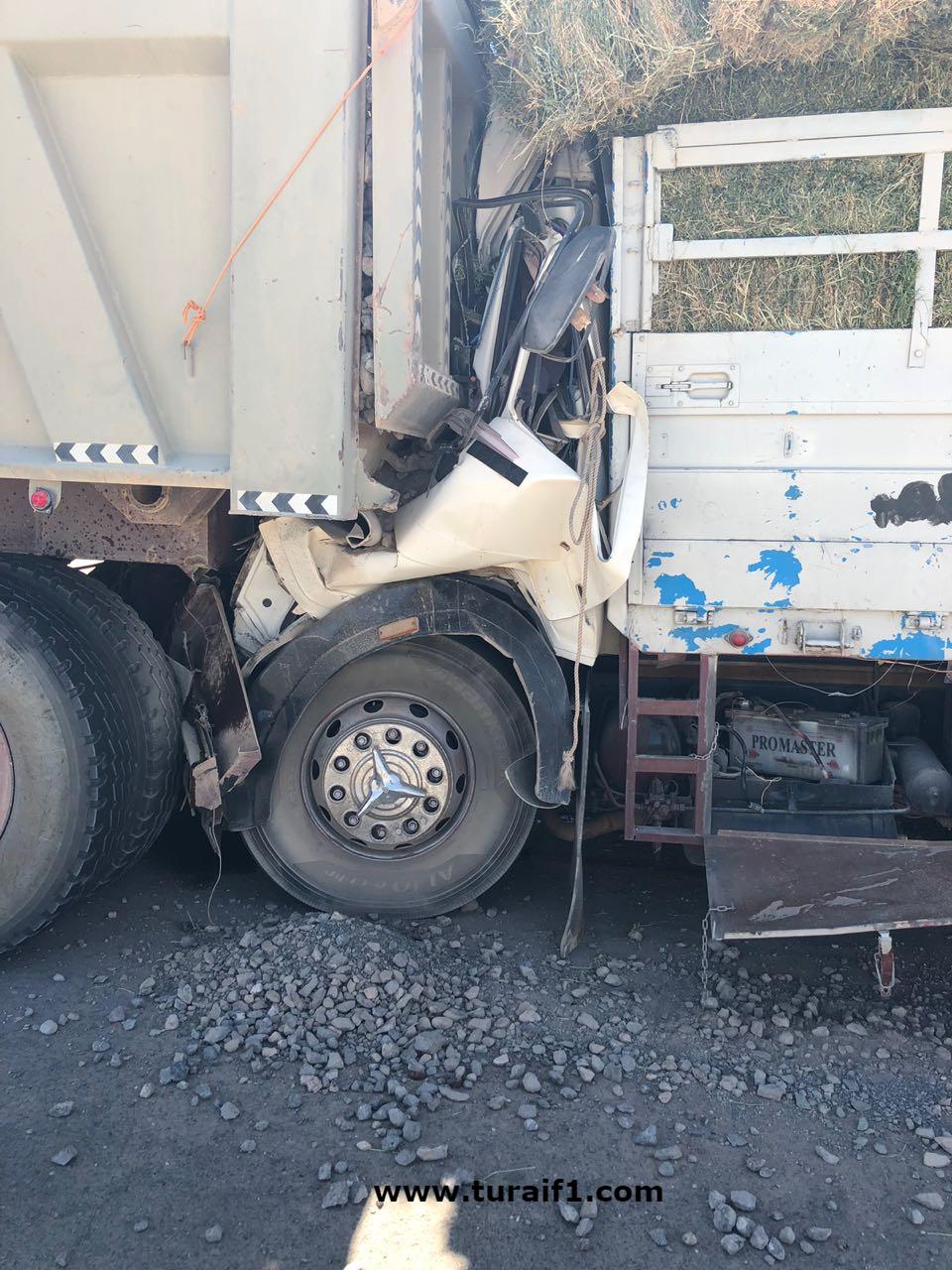 لقي شاب من أبناء محافظة طريف مصرعه جراء تعرضه لحادث على طريق طريف القريات أثناء قيادته لشاحنة محملة بالبرسيم والتي ارتطمت بشاحنة أخرى محملة بـ”الكنكري” من الخلف مما أدى إلى وفاته على الفور ،