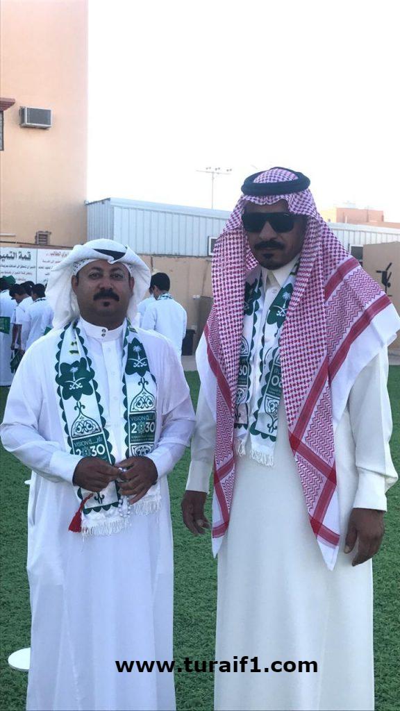 أقامت متوسطة وثانوية تحفيظ القرآن الكريم بطريف يوم الثلاثاء الماضي ١٤٤٠/١/١٥ احتفاءً بذكرى اليوم الوطني ٨٨ بإشراف ومتابعة قائد المدرسة عبدالله سالم الرويلي وجميع المعلمين والطلاب وقد تم خلالها تقديم إذاعة مميزة عن الوطن وتوزيع الأوشحة وأعلام المملكة وتشكيل رقم ٨٨ بطلاب المدرسة واختتمت الفعاليات بالنشيد الوطني بصوت موحد ومميز .