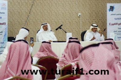 نظم البرنامج الثقافي بجمعية الثقافة والفنون بمنطقة الحدود الشمالية ندوة ثقافية بمناسبة اليوم العالمي للمعلم مساء يوم الاثنين الموافق ١٤٤٠/١/٢٨هـ على مسرح الجمعية تحت عنوان (المعلم صانع التغيير) قدمها المشرف التربوي بإدارة التعليم بالمنطقة الأستاذ محمد ثميل حيث تطرق عن أهمية المعلم ودوره في تنشئة جيل واع ومثقف .