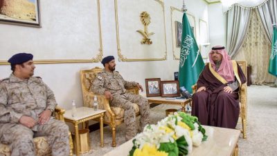 استقبل صاحب السمو الملكي الأمير فيصل بن خالد بن سلطان بن عبدالعزيز أمير منطقة الحدود الشمالية في مكتبه بالإمارة اليوم، اللواء الركن عايض بن أحمد أبو فائدة, بمناسبة تكليفه كقائد قوة عرعر , واللواء الركن علي بن محمد عسيري, بمناسبة انتهاء فترة عمله بالمنطقة.