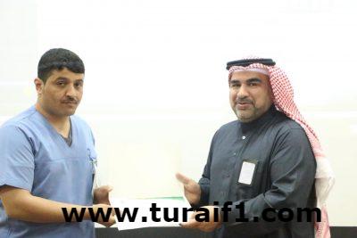 وقام مدير القطاع الصحي بطريف الاستاذ فايز بن سرحان الرويلي  بتكريم ٢٣ موظف وموظفة من موظفي القطاع.