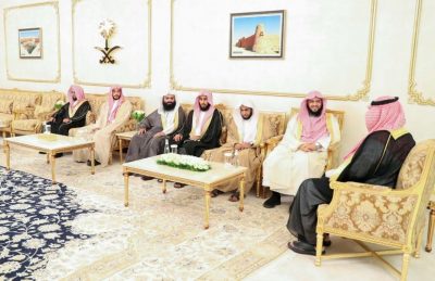 استقبل صاحب السمو الملكي الأمير فيصل بن خالد بن سلطان بن عبد العزيز أمير منطقة الحدود الشمالية بمكتب سموه في الإمارة اليوم, رئيس المحكمة العامة بعرعر الشيخ الدكتور خالد الجنيدي يرافقه عدد من قضاة المحكمة، الذين قدموا للسلام على سموه وتهنئته بعيد الفطر المبارك.