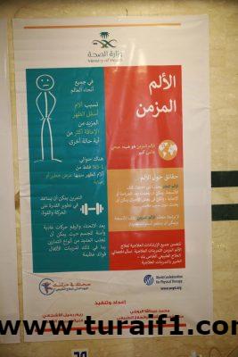 وقد قام مدير قسم التأهيل والعلاج الطبيعي أخصائي أول محمد بن عبد الله الرويلي بأطلاع مدير القطاع ومرافقيه على المشاركات والفعاليات المميزة التى أعدتها منسوبات القسم من خلال طاولات العرض واللوحات الجدارية والنشرات والمطويات ومحاضرات توعوية مباشرة عن بعض الحالات التى تسبب الألم المزمن وكيفية التعامل معها من قبل أخصائي وأخصائية العلاج الطبيعي .