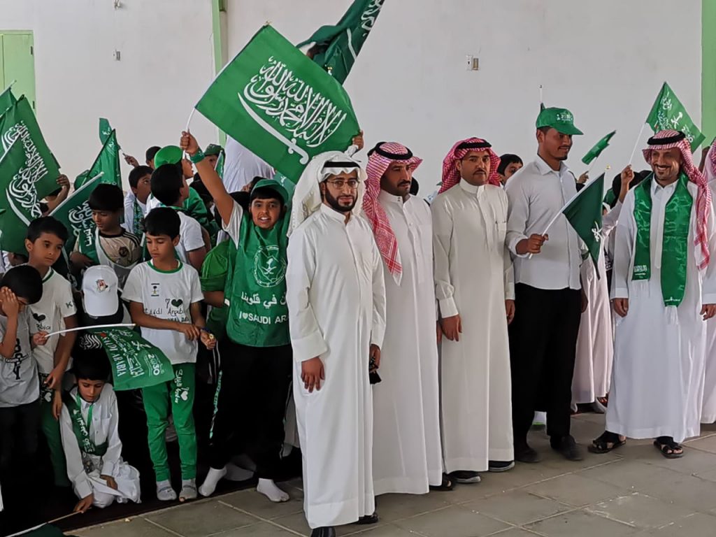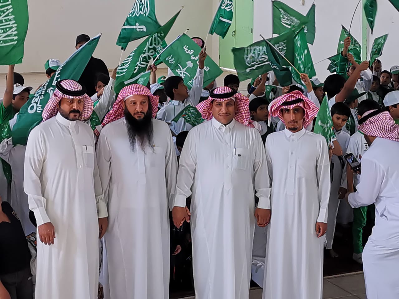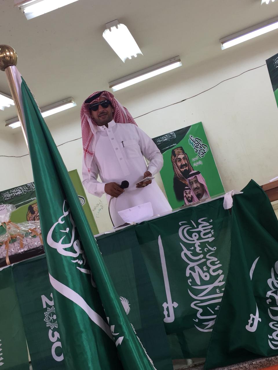 هذا وقد افتتح الحفل بآيات بينات من الذكر الحكيم ، أعقبها بعض الكلمات من منسوبي المدرسة بقيادة قائدها الأستاذ خالد الصيخان ووكيل المدرسة الأستاذ محمد عقيل الرويلي ورائد النشاط الأستاذ هايل بن عايض الرويلي عبروا من خلالها عن مدى اعتزازهم وفخرهم بالانتماء لهذا الوطن وكذلك مدى سعادتهم بهذه الذكرى الطيبة على نفوس الجميع ، ثم أقيمت عدداً من الأنشطة والمسابقات الترفيهية تخللها مشاركات الطلاب بإلقاء العديد من الكلمات الوطنية والأشعار التي تنمي حب الأوطان داخل الطلاب .