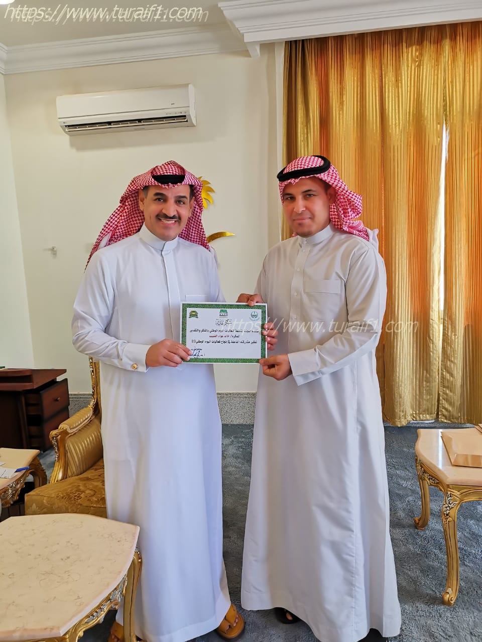 كما قدم مدير العلاقات العامة بالإمارة الأستاذ خالد الرشيدان درعاً لسعادة محافظ طريف الأستاذ بدر بن نجر الصقر علي جهوده المبذولة لرقي محافظة طريف.