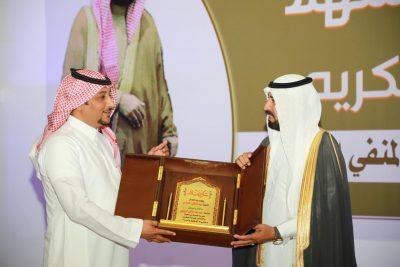 ثم قام سعادة محافظ طريف بتكريم الأستاذ عبدالله المنفي الرويلي ثم قام عدد من الحضور بتوزيع الدروع والهدايا للأستاذ عبدالله المنفي .