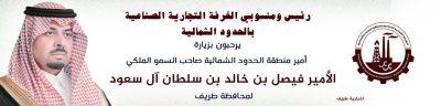 عبر أمين الغرفة التجارية الصناعية بمنطقة الحدود الشمالية محمد بن غياض الدهمشي عن سعادته بالزيارة الميمونة من صاحب السمو الملكي الأمير فيصل بن خالد بن سلطان بن عبدالعزيز آل سعود ـ حفظه الله ـ أمير منطقة الحدود الشمالية لمحافظة طريف .