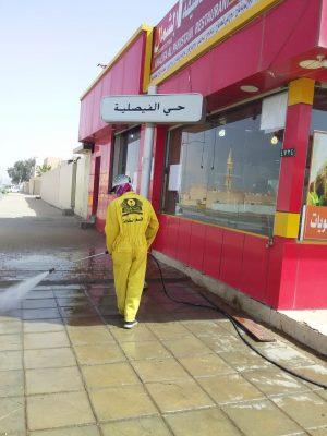 كما تابعت تعقيم الشوارع والحاويات حرصًا على سلامة المواطنين والمقيمين.
