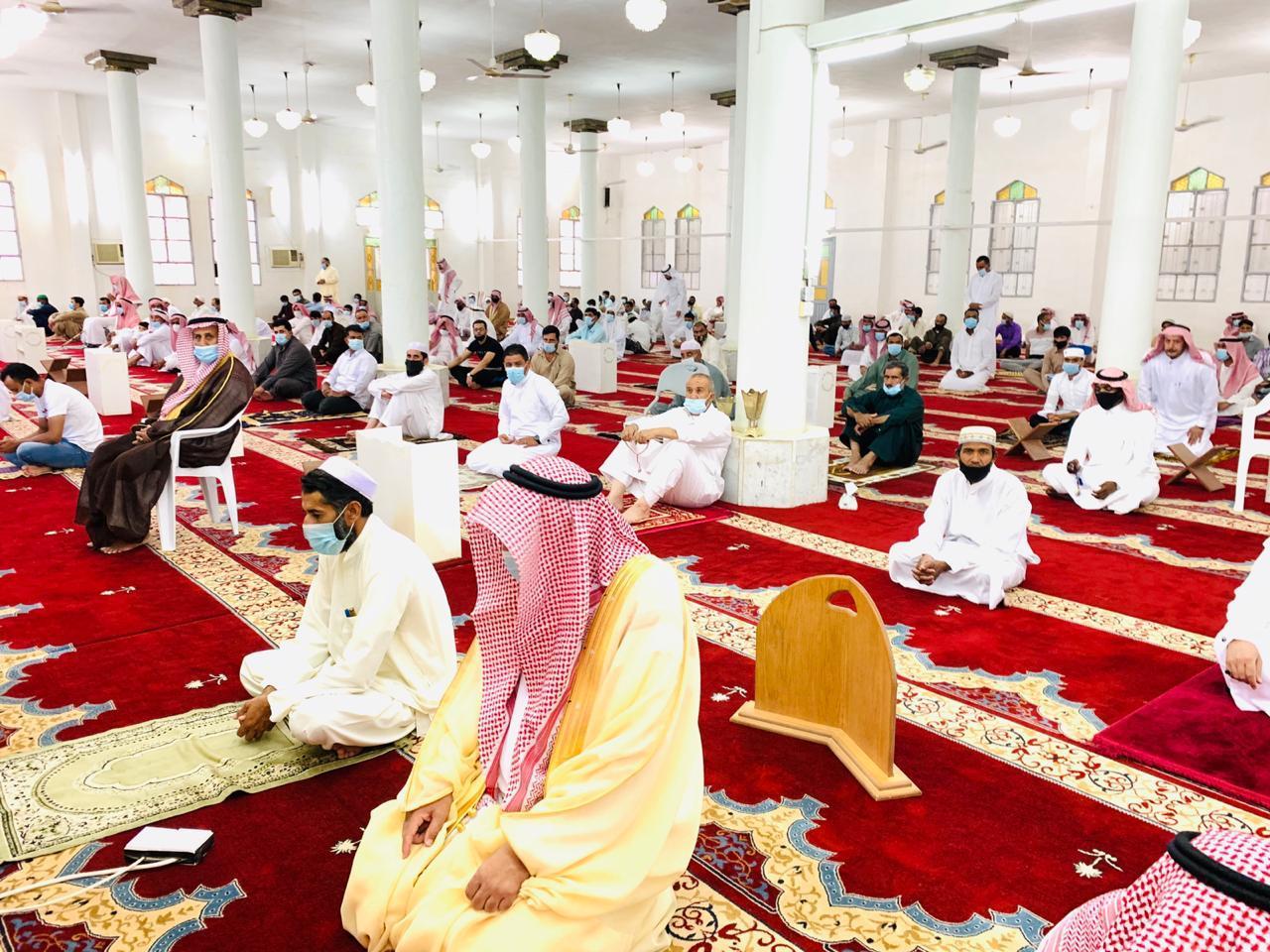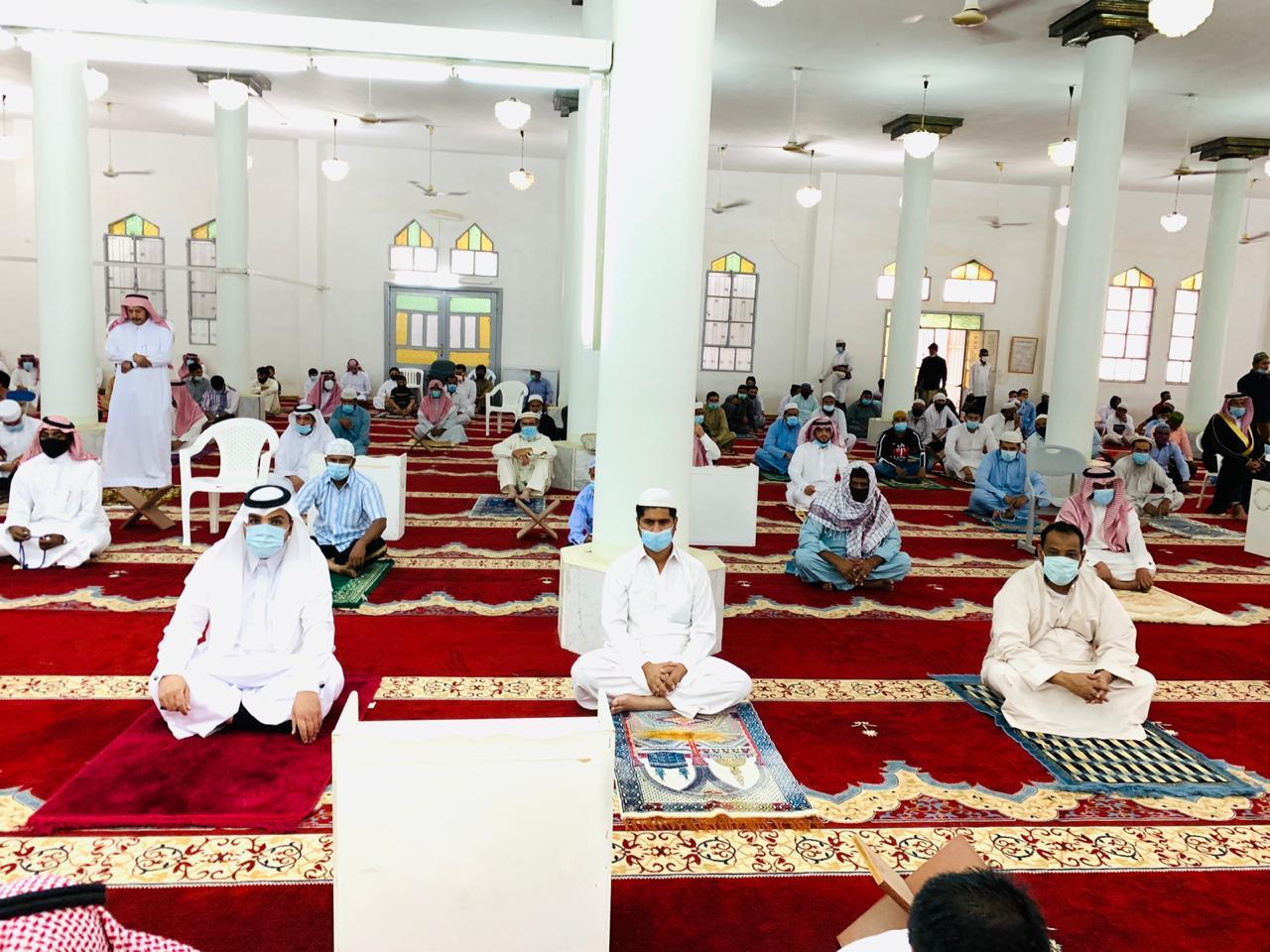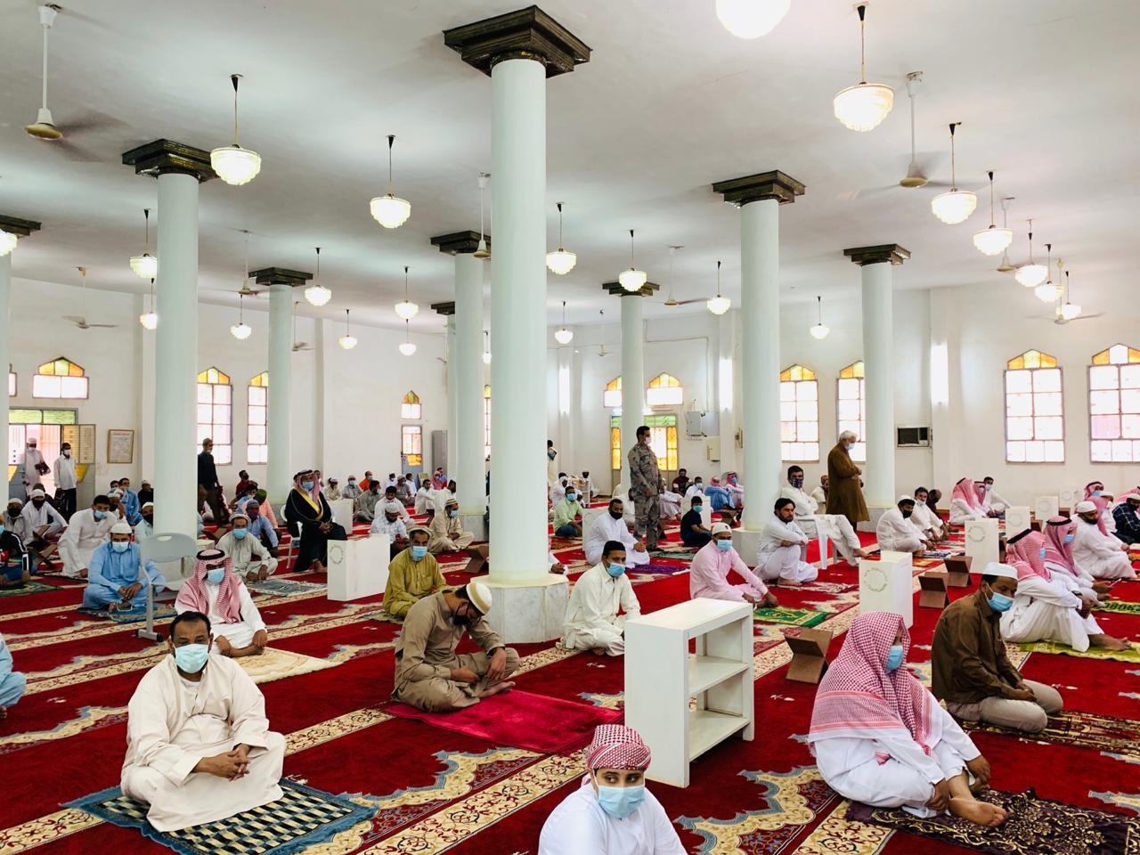 وقد أم المصلين الشيخ /نايف المحيسن حيث تم أثناء أداء الصلاة تطبيق الإجراءات الوقائية الاحترازية المتبعة .