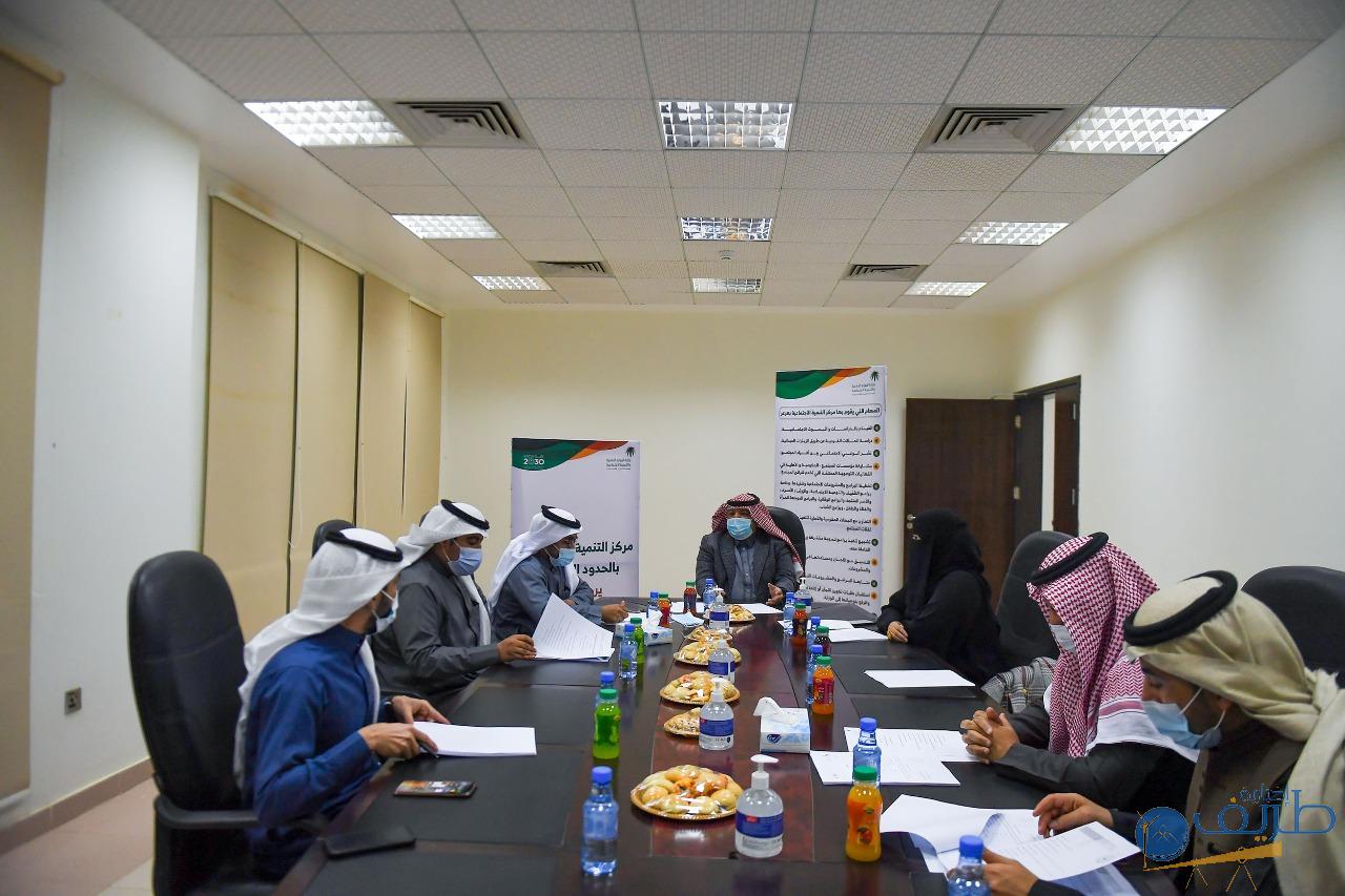ورأس الاجتماع رئيس مجلس الإدارة ثامر سودي قمقوم بحضور مدير مركز التنمية الاجتماعية عايد بن مرضي العنزي وأعضاء مجلس الإدارة.