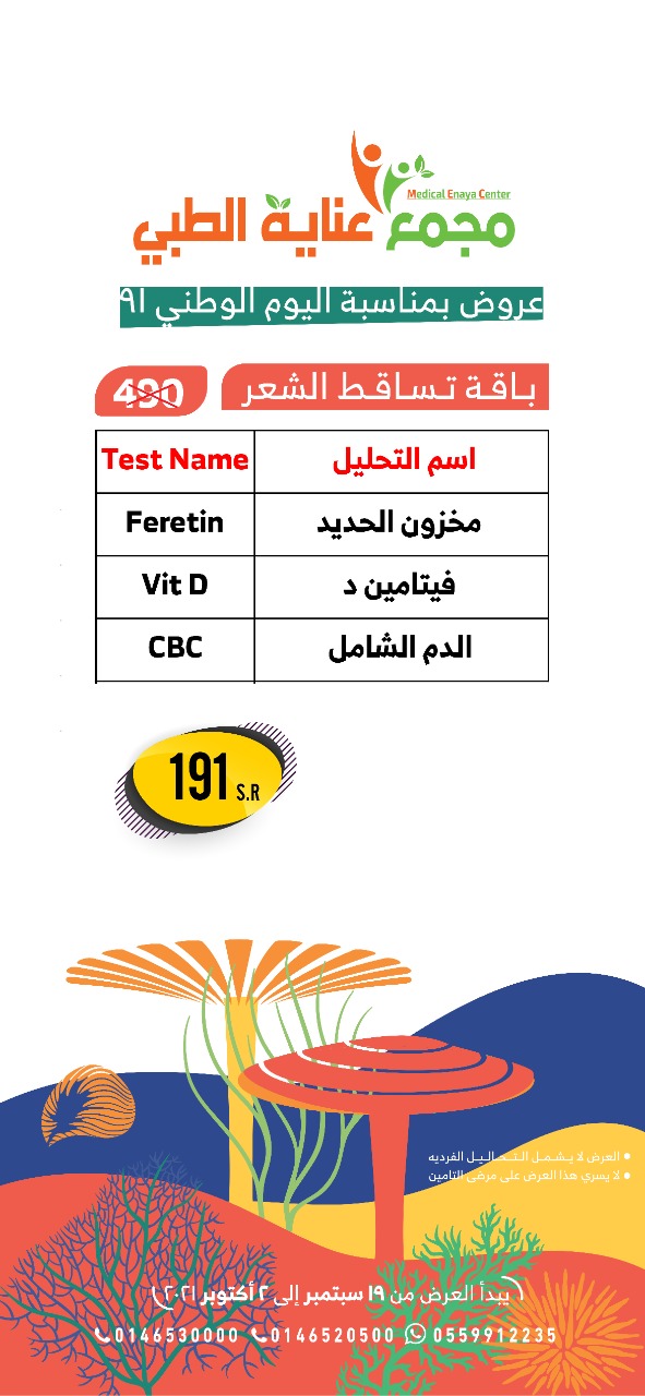 أعلن مجمع عناية الطبي عن عروضة بمناسبة اليوم الوطني للملكة العربية السعودية 91.