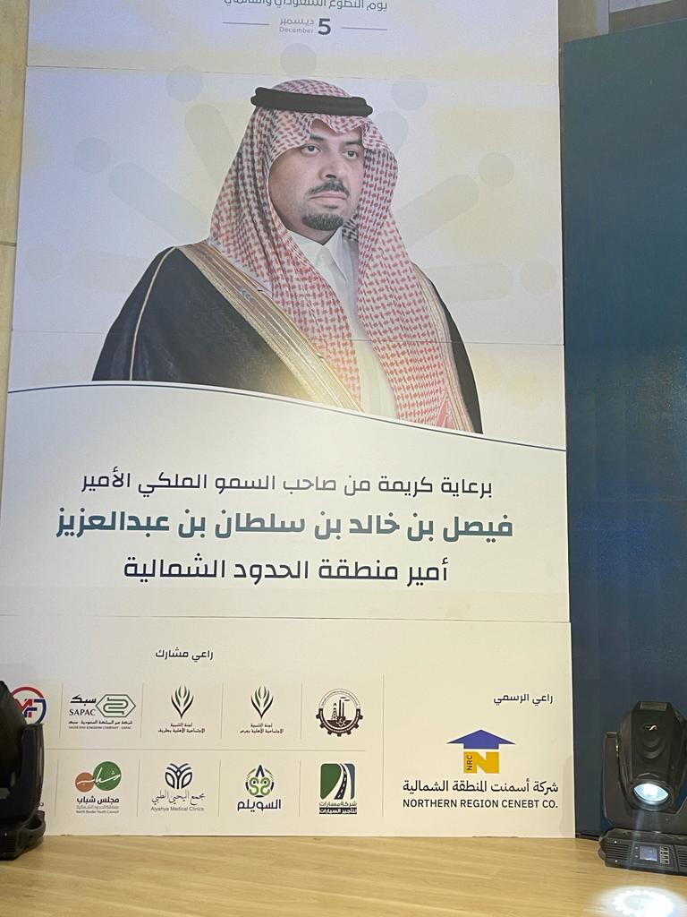 هذا وكان أمير منطقة الحدود الشمالية الأمير فيصل بن خالد بن سلطان بن عبدالعزيز قد رعى في مطلع هذا الأسبوع فعاليات اليوم العالمي للتطوع والذي نظمه فرع وزارة الموارد البشرية والتنمية الاجتماعية بمنطقة الحدود الشمالية.