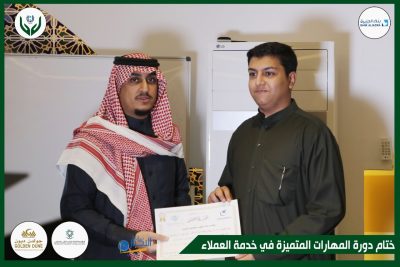 اختتمت دورة المهارات المتميزة في خدمة العملاء اليوم الثلاثاء ٤ / ١ / ٢٠٢٢ وذلك بجمعية رعاية الأيتام بطريف بحضور رئيس مجلس إدارة الجمعية الأستاذ ثاني مسهوج العنزي، بقاعة المؤتمرات بفندق جولدن.