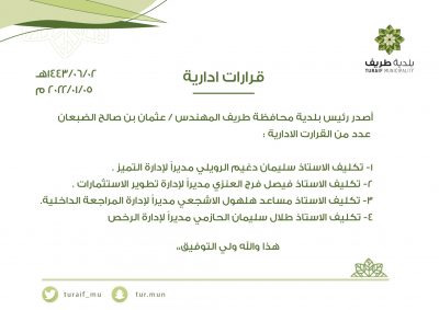 - 11/12/2025 إخبارية طريف تبارك للمهندس يوسف يحيى الزلباني حصوله على اعتمادين مهنيين في الإرشاد المهني