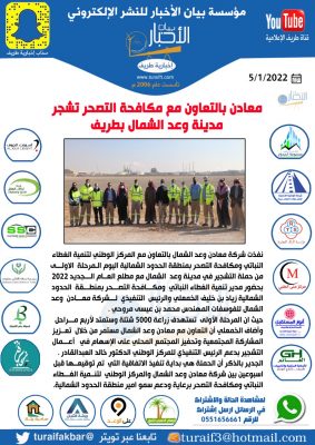 أخبار طريف > بالصور .. معادن بالتعاون مع مكافحة التصحر تشجر مدينة وعد الشمال بطريف > 9FA53308-53CF-426A-83FF-7CABF395853A