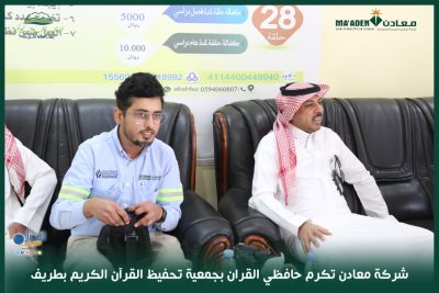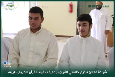 وذلك بمقر جمعية تحفيظ القرآن الكريم بمحافظة طريف وذلك بحضور مدير إدارة الأمن والسلامة المهندس سلطان بن هزاع الشعلان ومدير الإستدامة بالشركة الأستاذ مبارك الفالح وبحضور الأستاذ خيران بن عجاج الرويلي رئيس جمعية تحفيظ القرآن الكريم بمحافظة طريف والمدير التنفيذي للجمعية المهندس يوسف الزلباني وعدد من أعضاء مجلس الإدارة وأولياء أمور الطلاب .