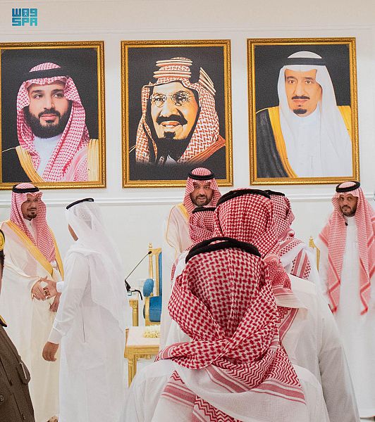 استقبل صاحب السمو الملكي الأمير فيصل بن خالد بن سلطان بن عبدالعزيز أمير منطقة الحدود الشمالية اليوم ، بحضور صاحب السمو الملكي الأمير سعود بن عبدالرحمن بن ناصر بن عبدالعزيز نائب أمير منطقة الحدود الشمالية،أصحاب الفضيلة والمعالي و المسؤولين وقادة القطاعات العسكرية ومديري الإدارات الحكومية وأهالي المنطقة، الذين قدّموا التهاني والتبريكات لسموه بحلول عيد الأضحى المبارك.