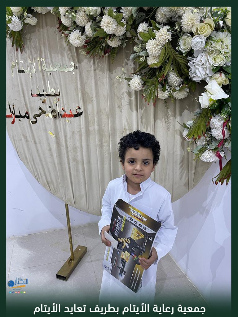 عايد سعادة محافظ طريف الأستاذ بدر بن نجر الصقر أيتام جمعية رعاية الأيتام بطريف بجامع نجر العتيبي بعد صلاة العيد وتم تسليم جوائز وعيديات خاصة من سعادته ، وقدم سعادته شكره لرئيس مجلس إدارة جمعية رعاية الايتام بطريف الأستاذ ثاني مسهوج العنزي وجميع العاملين بالجمعية
