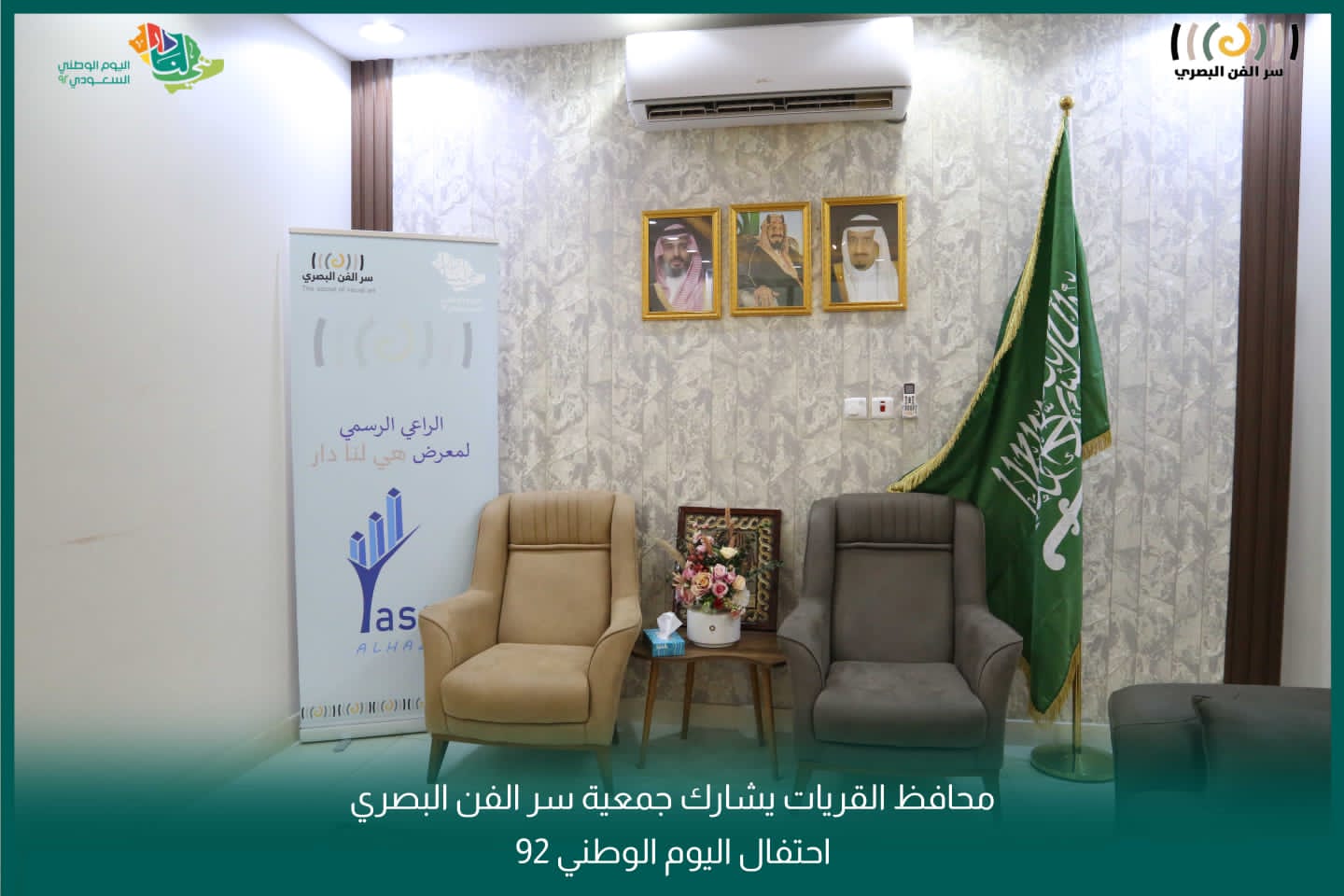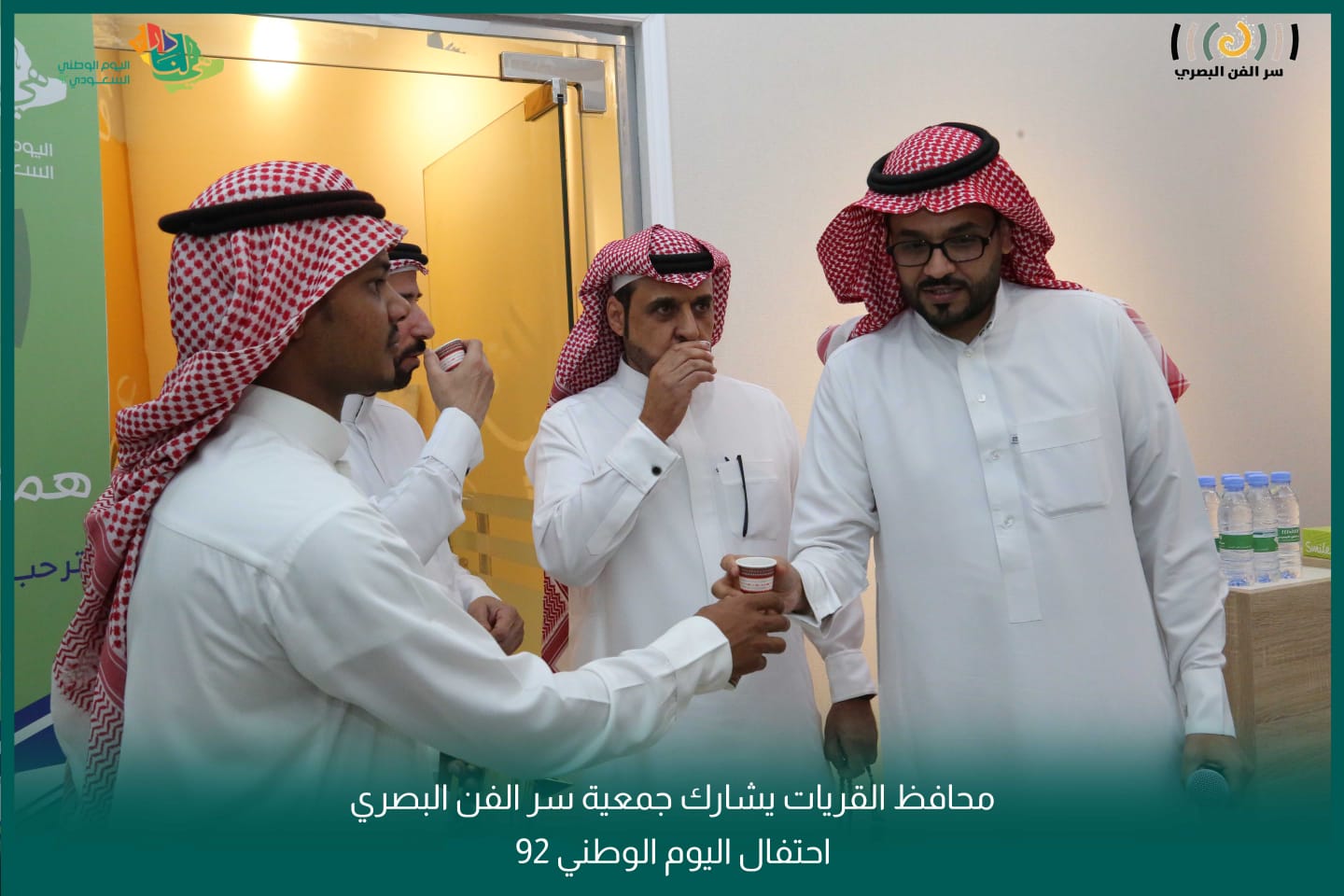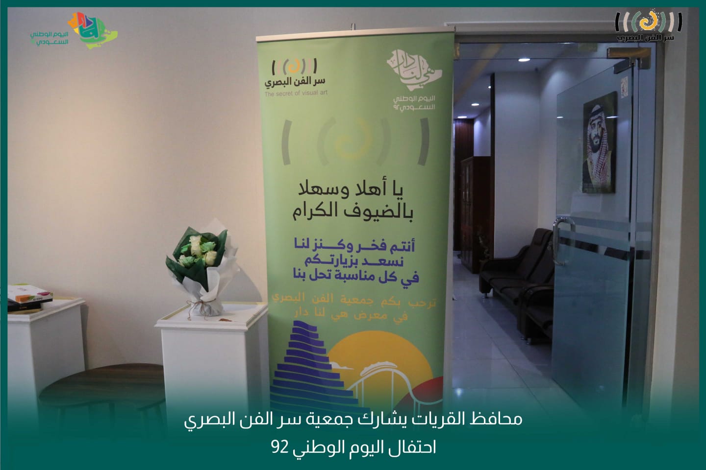 وكان باستقباله لدى وصوله أ. هيا الموسى رئيس جمعية سر الفن البصري بالقريات واعضاء الجمعية د. ياسر المدوح وأ. محمد الحلوان .