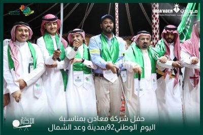 أقامت شركة التعدين العربية السعودية “معادن ” احتفال باليوم الوطني الـ 92 للمملكة وذلك في المدينة السكنية في وعد الشمال بمحافظة طريف.