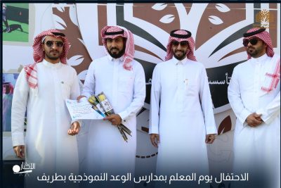 أقامت مدارس الوعد النموذجية بمحافظة طريف حفلا بمناسبة يوم المعلم إيمانا منها بدور المعلم الذي يعد هو صانع الأجيال وصانع النهضة الحقيقية لبناء الأمم .