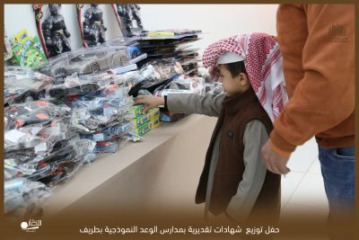 الوعد النموذجية حفلا ختاميا رسمت به البهجة على وجوه الطلاب وأولياء الأمور من خلال توزيع الاشعارات وشهادات تقدير الترم الثاني للطلبة مع هدايا للصف الأول والثاني الابتدائي .