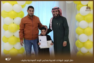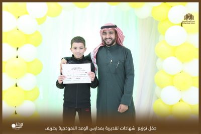 أقامت مدارس الوعد النموذجية حفلا ختاميا رسمت به البهجة على وجوه الطلاب وأولياء الأمور من خلال توزيع الاشعارات وشهادات تقدير الترم الثاني للطلبة مع هدايا للصف الأول والثاني الابتدائي .