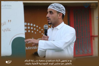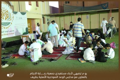أقامت جمعية رعاية الأيتام بمحافظة طريف يوم ترفيهي لمستفيدي الجمعية بالتعاون مع مدارس الوعد النموذجية الأهلية بمحافظة طريف و ذلك تمهيدا لإعادة افتتاح نادي الأيتام تحت إشراف الجمعية.