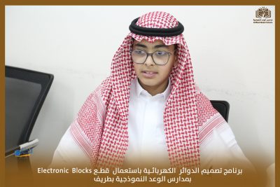نظمت مدارس الوعد النموذجية الأهلية بطريف برنامج تصميم الدوائر الكهربائية باستعمال قطع Electronic Blocks للطلاب الموهوبين، من تقديم الأستاذ محمد رحالي.