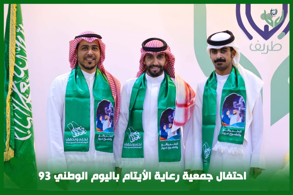 احتفلت جمعية رعاية الأيتام بمحافظة طريف باليوم الوطني الـ 93 للمملكة، بحضور نائب رئيس الجمعية، وعدد من الأعضاء، وذلك في مقر الجمعية.