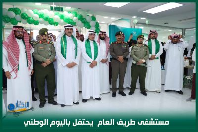 شرف سعادة محافظ طريف الأستاذ بدر بن نجر الصقر فعاليات الاحتفال باليوم الوطني الـ 93 والذي أقامه مستشفى طريف العام حيث كان في استقباله سعادة مدير القطاع الصحي بطريف الأستاذ ناصر المدوح وسعادة مدير مستشفى طريف العام الأستاذ خالد مهل الرويلي وعدد من القيادات الصحية ومدراء الدوائر الحكومية والعسكرية في محافظة طريف .